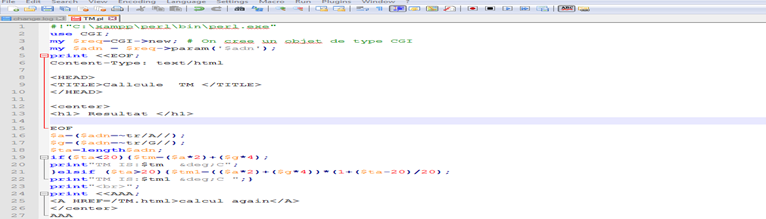 Maintenant, nous pouvons relier html avec perl comme sur cette image pour calculer TM "La température de fusion"